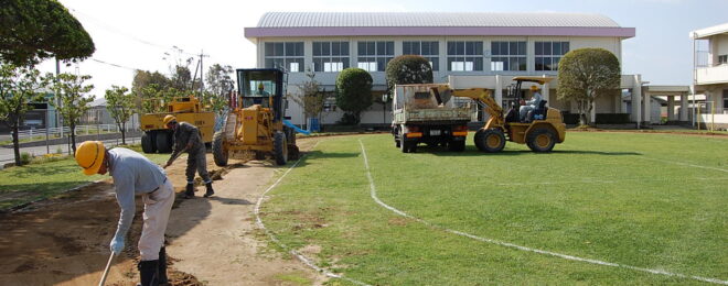 このたび池山建設では、地域の養護学校よりご依頼をいただき、校内グラウンドの整備工事を実施いたしました。 グラウンドは、子どもたちが体育の授業や休み時間に元気いっぱい体を動かす大切な場所。 長年の使用により地面の凹凸や排水不良が見られたため、安全に使えるよう整地・転圧・排水調整を行い、…